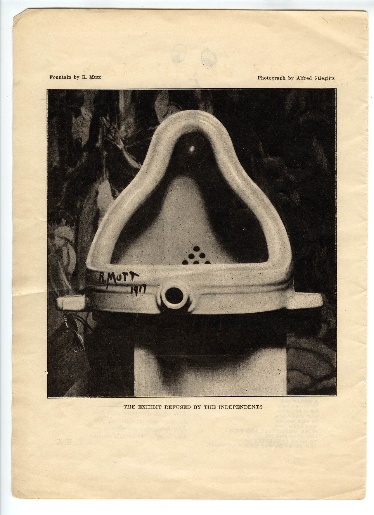 “They say an artist paying six dollars may exhibit. Mr. Richard Mutt sent in a fountain. Without discussion this article disappeared and never was exhibited.